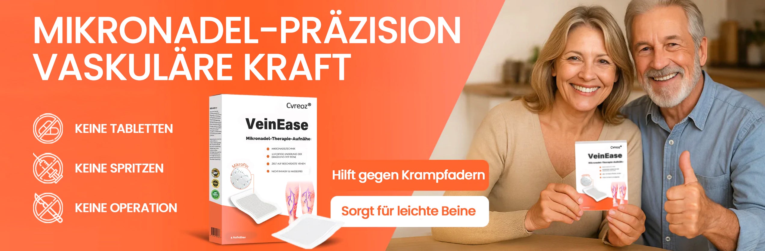 "Seit meiner ersten Schwangerschaft habe ich mit Krampfadern zu kämpfen, und das Schweregefühl und die Schwellungen in meinen Beinen machten selbst einfache Aufgaben schwierig. Ich habe alles versucht - Cremes, Massagen, Kompressionsstrümpfe - aber nichts schien zu helfen. Dann entdeckte ich das Cvreoz®-Pflaster, und es veränderte mein Leben völlig. Innerhalb von drei Wochen begannen die Venen zu verblassen, und der ständige Schmerz war verschwunden. Die Mikronadeln fühlten sich anfangs ungewohnt an, aber sie sind schmerzfrei und sehr effektiv. Endlich kann ich meinen Kindern ohne Beschwerden hinterherlaufen - dieses Pflaster ist ein Lebensretter!"