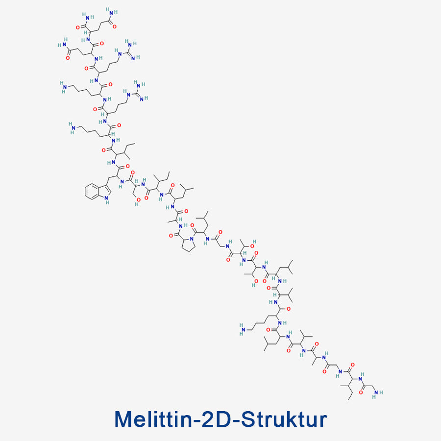 Melittin, ein kraftvolles Peptid, das 40–60 % des Bienengifts ausmacht, ist bekannt für seine antimykotischen Eigenschaften. Es zielt gezielt auf Pilzzellen ab und zerstört deren Zellmembranen, während gesundes Gewebe geschützt wird.