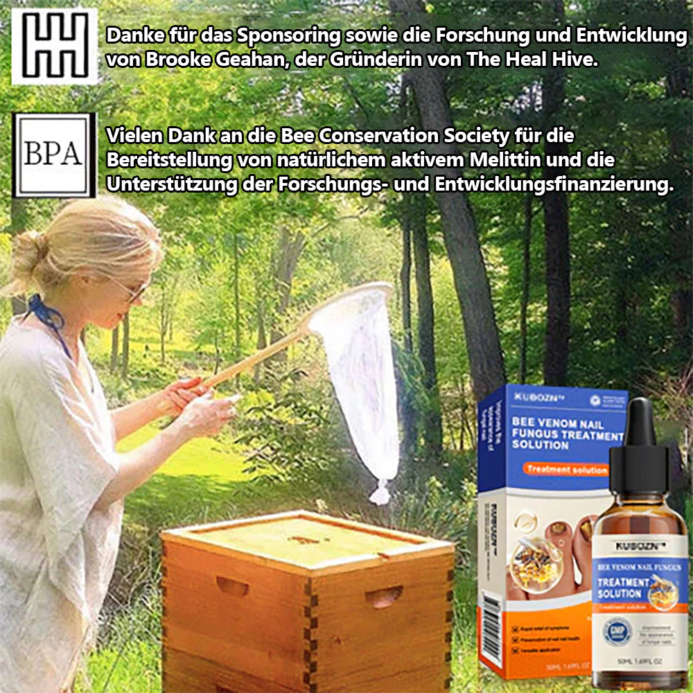 Das natürliche aktive Bienengift in der KUBOZN® Bienengift-Nagelpilz-Behandlungslösung wird mit modernster Technologie aus Bienen gewonnen, ohne ihnen Schaden zuzufügen.Äther wird verwendet, um die Nerven der Bienen zu betäuben. Sobald die Bienen genügend Ätherdampf eingeatmet haben, scheiden sie das Gift aus. Sobald der Äther verfliegt, fliegen die Bienen davon.Dieser Prozess gilt als human und schadet den Bienen nicht. Zusätzlich wird die Qualität des Bienengifts durch jahrzehntelange Züchtung und Reproduktion sichergestellt. Die Bienen werden zu 100 % natürlich gezüchtet, und dieser Prozess ist durch Tierschutzgesetze genehmigt.